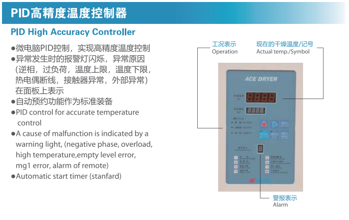 方便操作的機能滿載,適合對應工廠的干燥機。