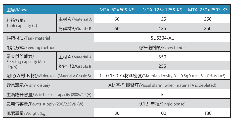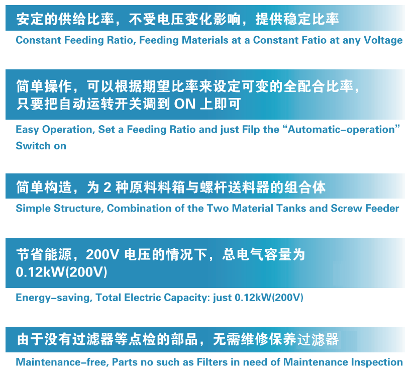 經(jīng)濟型容量計量機川田的混合料箱能以給2種材料(主材與粉碎材)提供各種各樣的安定混合比率,是經(jīng)濟型的機種